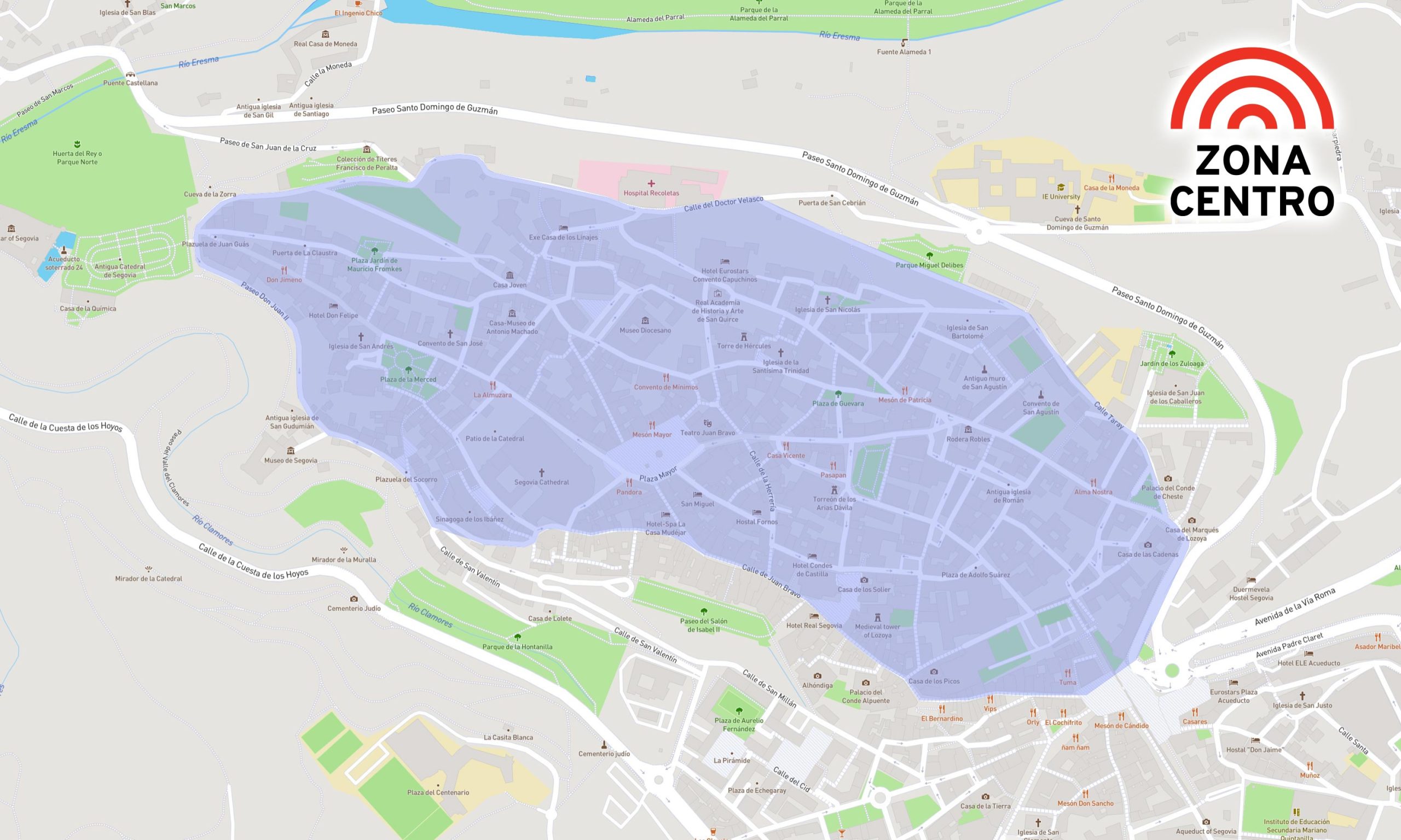 La Zona Centro de la ZBE de Segovia es fácilmente identificable por su coincidencia física con el recinto amurallado de la ciudad de Segovia.